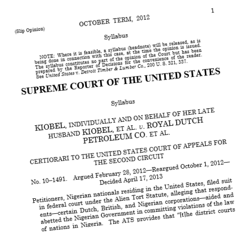 Perhaps the only surprise in yesterday’s ruling in Kiobel v. Royal Dutch Petroleum was the vote: the long-running lawsuit, brought by Nigerian-born U.S. asylees, was rejected unanimously by the 9 Justices of the U.S. Supreme Court.