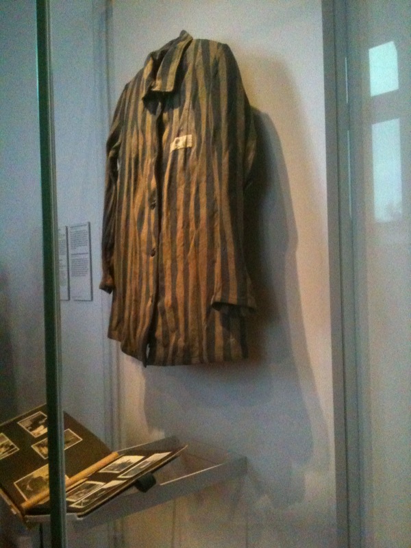 It is in the 20th C. gallery atop the museum that visitors encounter another sobering aspect of world events. The striped jacket at right once was worn by Isabel Wachenheimer, a 16-year-old German whose Jewish family had sought refuge in Rotterdam from the Nazis. After the Netherlands was occupied, all were deported to Auschwitz, where her parents perished. She would be liberated at Mauthausen, a concentration camp in Austria where a fifth of the inmates were teenagers. Isabel, who became a U.S. citizen in the ’60s, kept her Mauthausen jacket. It’s described in museumspeak as “Germany, after 1938. Rags printed with blue ink, plastic.”