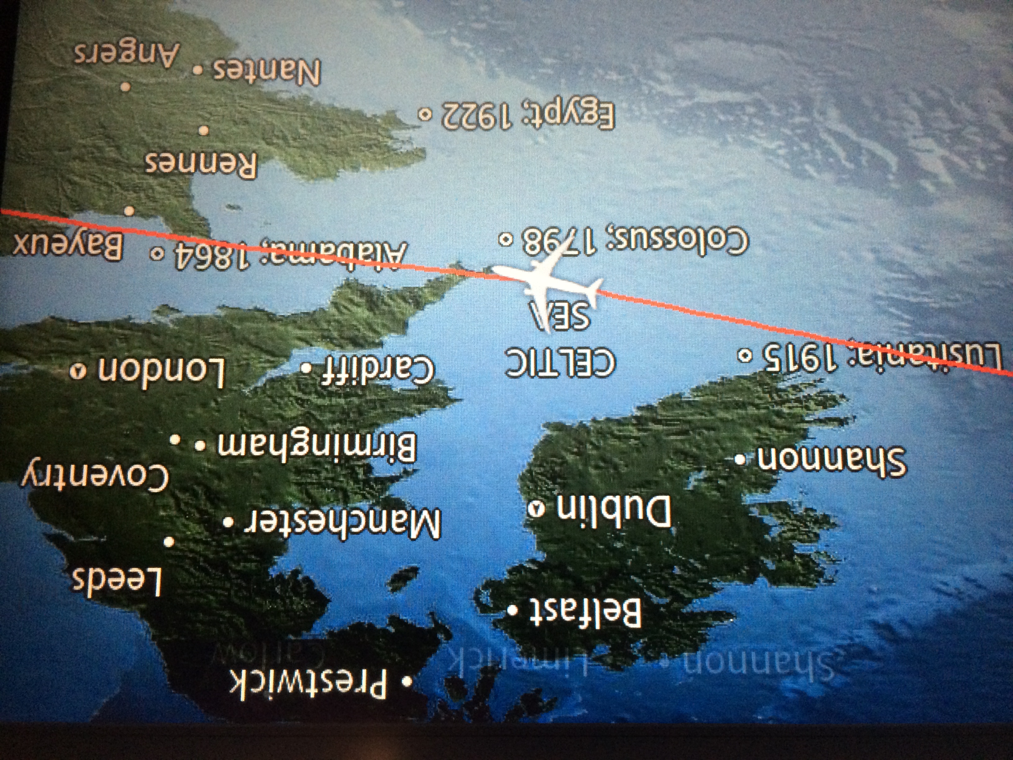 The first is at left. It’s a favorite feature of transatlantic flying these days, the seatback map by which the white silhouette of a jet tells passengers where they are, where they’ve been, and where they’re headed. This one especially caught the eye because of the markings accompanied by years. No, that’s not Egypt relocated to France’s western coast, but rather an indication of where a ship named Egypt sank in 1922. Many such shipwrecks were noted along the way: of historical significance to be sure is Lusitania 1915 to the left. But for the international lawyer, perhaps greatest interest is Alabama 1864, in the channel between London and Bayeux. As a Confederate ship outfitted by the British, the Alabama plied European waters to harass Union ships. That behavior and its sinking gave rise to a landmark dispute settlement proceeding known as The Alabama Claims. In the words of the U.S. Department of State: